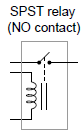 An electromechanical relay is an electrical switch actuated by an electromagnet coil. As switching devices, they exhibit simply “on” and “off” behavior with no intermediate states. The electronic schematic symbol for a simple single-pole, single-throw (SPST) relay is shown here: