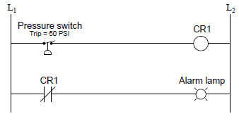 To illustrate this concept, let us examine a relay control circuit where a pressure switch activates an alarm light: