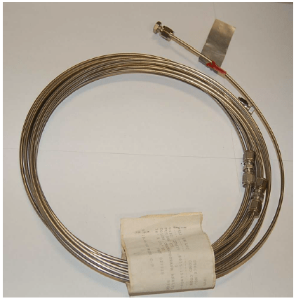 This particular GC column is 28 feet long, with an outside diameter of only 1/8 inch (the tube’s inside diameter is even less than that). Column geometry and packing material vary greatly with the application. The many choices intrinsic to column design are best left to specialists in the field of chromatography, not the average technician or even the average process engineer.