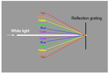 Some dispersive analyzers use a reflection grating instead of a refraction grating. Reflection gratings use fine lines etched on a reflective (mirror) surface to produce an equivalent dispersive effect to a diffraction grating: