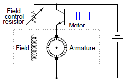 A better solution is to have an electronic power control circuit very rapidly switch transistors on and off, switching power to the motor armature. This is called pulse-width modulation, or PWM.