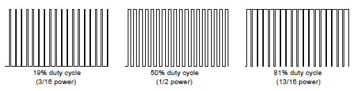 The duty cycle (on time versus on+off time) of the pulse waveform will determine the fraction of total power delivered to the motor: