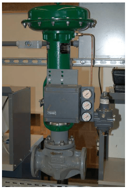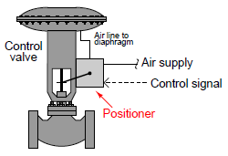 Positioners essentially act as control systems within themselves15: the valve’s stem position is the process variable (PV), the command signal to the positioner is the setpoint (SP), and the positioner’s signal to the valve actuator is the manipulated variable (MV) or output. Thus, when a process controller sends a command signal to a valve equipped with a positioner, the positioner receives that command signal and applies as much or as little air pressure to the actuator as needed in order to achieve that desired stem position. Thus, the positioner will “fight” against any other forces acting on the valve stem to achieve crisp and accurate stem positioning according to the command signal. A properly functioning positioner ensures that the control valve will be “well-behaved” and obedient to the command signal.