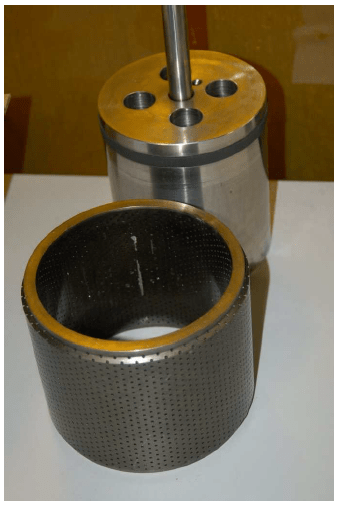 Fisher manufactures a series of noise-abatement trim for process gas service called Whisper trim. A “Whisper” plug and cage set is shown in this next photograph: