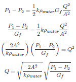 R = √P1 − P2/Q; R = √(kρ/2A2)