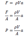 Since this accelerating force is applied on the cross-sectional area of the fluid plug, we may express it as a pressure, the definition of pressure being force per unit area: