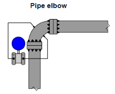 Another way we may accelerate a fluid is to force it to turn a corner through a pipe fitting called an elbow. This will generate radial acceleration, causing a pressure difference between the outside and inside of the elbow which may be measured by a differential pressure transmitter: