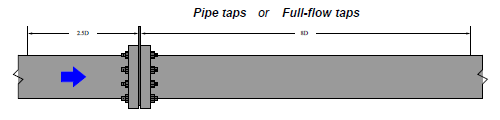 Care should be taken to avoid measuring downstream pressure in the highly turbulent region following the vena contracta. Therefore, the pipe tap (also known as full-flow tap) standard calls for a downstream tap location eight pipe diameters away from the orifice: to give the flow stream room to stabilize for more consistent pressure readings.