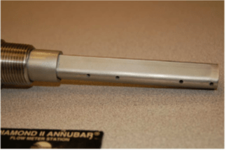 A variation on the latter theme is the Annubar flow element, a trading name of the Dieterich Standard corporation. An “Annubar” is an averaging pitot tube consolidating high and low pressure sensing ports in a single probe assembly: