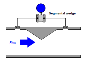 Segmental wedge elements are special pipe sections with wedge-shaped restrictions built in. These devices, albeit crude, are useful for measuring the flow rates of slurries, especially when pressure is sensed by the transmitter through remote-seal diaphragms (to eliminate the possibility of impulse tube plugging):