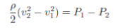 Now we will algebraically re-arrange this equation to show pressures at points 1 and 2 in terms of velocities at points 1 and 2: