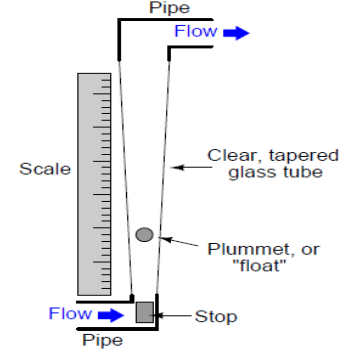 The simplest example of a variable-area flowmeter is the rotameter, which uses a solid object (called a plummet or float) as a flow indicator, suspended in the midst of a tapered tube: