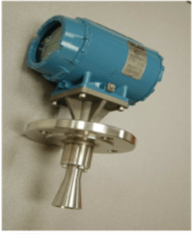 Non-contact radar transmitters are always mounted on the top side of a storage vessel. Modern radar transmitters are quite compact, as this photograph shows: