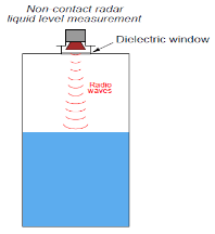 Non-contact radar instruments rely on antennas to direct microwave energy into the vessel, and to receive the echo (return) energy. These antennas must be kept clean and dry, which may be a problem if the liquid being measured emits condensable vapors. For this reason, non-contact radar instruments are often separated from the vessel interior by means of a dielectric window (made of some substance that is relatively “transparent” to electromagnetic waves yet acts as an effective vapor barrier):