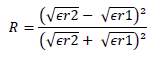For situations where the first medium is air or some other low-permittivity gas, the formula simplifies to the following form (with or being the relative permittivity of the reflecting substance):