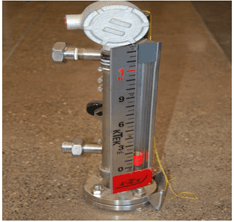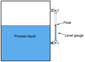 A variation on the theme of float level measurement is to place a small float inside the tube of a sight glass-style level gauge: