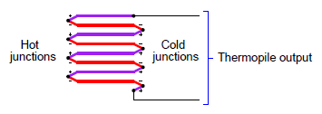 The basic concept of a thermopile is to connect multiple thermocouple junctions in series so their voltages will add: